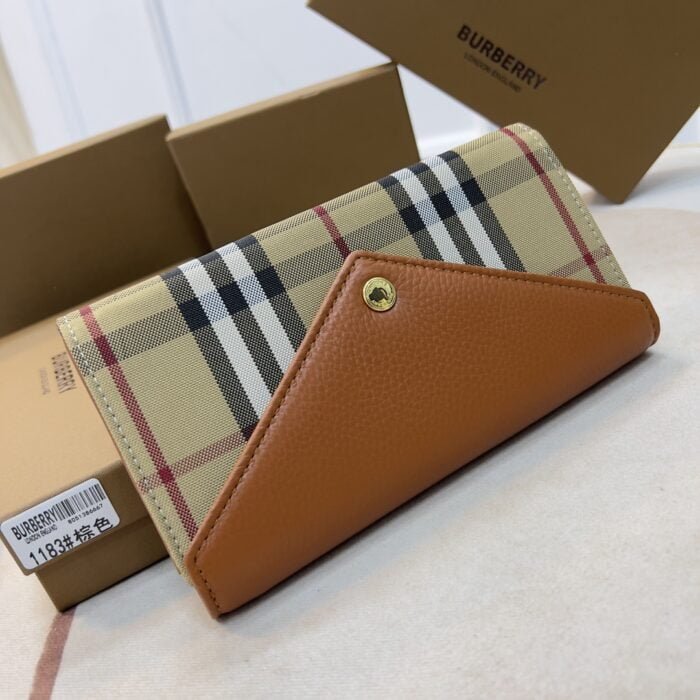 Slim long money clip, freshly made of Vintage checked pieces of grain leather, with multiple card slots; The new brand logo is engraved on the button. Gold hardware accessories, 👍 counter quality, fine workmanship 💋 Kind photo 📷, 🆔🆔1183 brown, black size 19.5cm*3cm*10cm*.