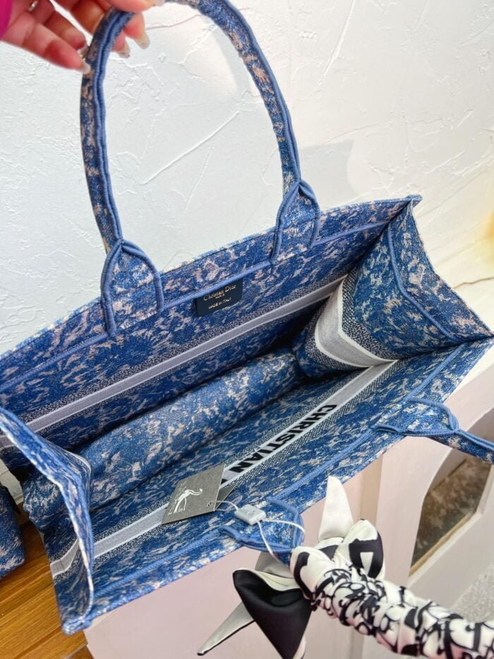 Dior book tote bag blue with small wallet size 41cm