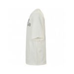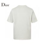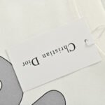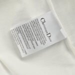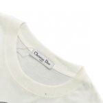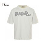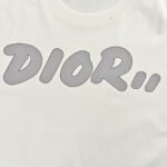 This Dior t-shirt features a bold oversized Dior logo in grey on the front. The shirt is primarily white. offering a relaxed fit with short sleeves and a high neck. Perfect for adding a statement piece to your casual wardrobe while staying comfortable.