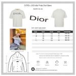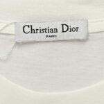 This Dior t-shirt features a bold oversized Dior logo in grey on the front. The shirt is primarily white. offering a relaxed fit with short sleeves and a high neck. Perfect for adding a statement piece to your casual wardrobe while staying comfortable.