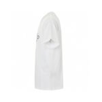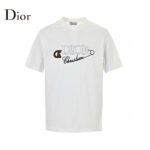 This Dior t-shirt features a unique design with the brand name and a stylized safety pin graphic. along with the signature Christian in elegant script. The clean white background emphasizes the bold and creative design. making it a fashionable and distinctive addition to any wardrobe.