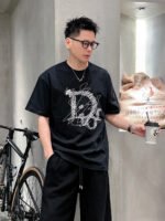 This Dior t-shirt features an abstract scribble design in white on a black background. Made from high-quality cotton. it offers a unique artistic touch to any casual outfit. Perfect for those who appreciate minimalist yet eye-catching designs.