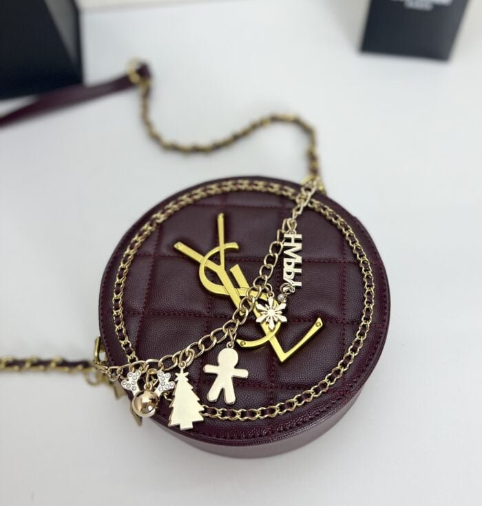 首页 BAGS YSL YSL round bun bag with chain strap Wine red size: 17cm